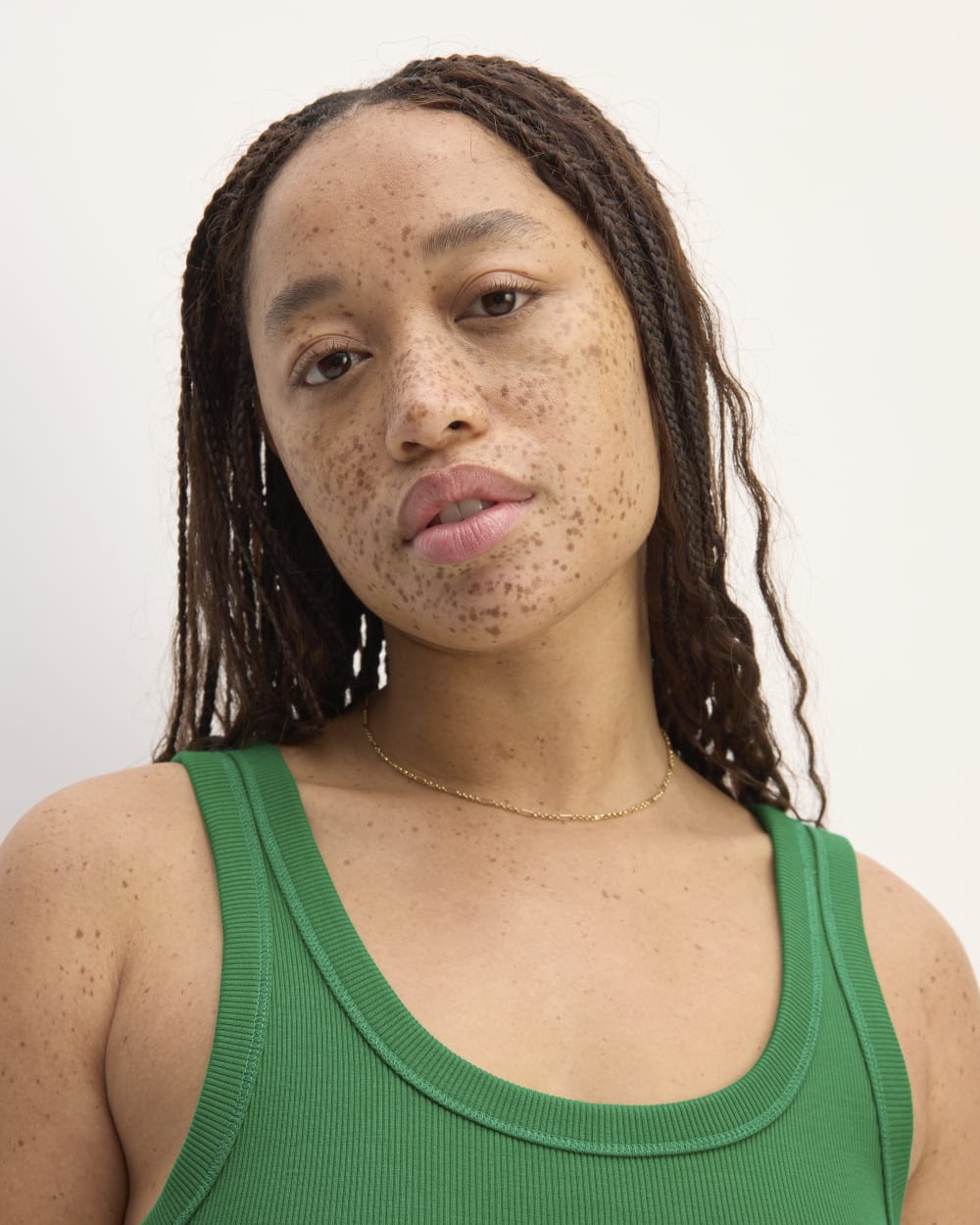 Designed to be the perfect curve hugging dress. The ’90s Rib Dress is made of premium cotton with a cutaway neckline. bra-friendly straps. and a midi length. It hugs you in just the right places with enough stretch for ultimate comfort. Keep it casual with our ReLeather Sneakers and our Everyone Denim Jacket.