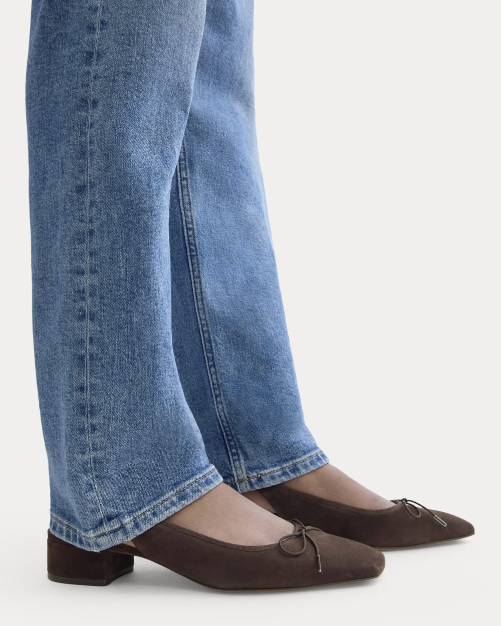 Blending the poise and grace of a ballet flat with an edgy square toe. it features a neat bow. slingback strap. and a low block heel. Treat them just like you would your flats and wear them with any look for that low-key polish.