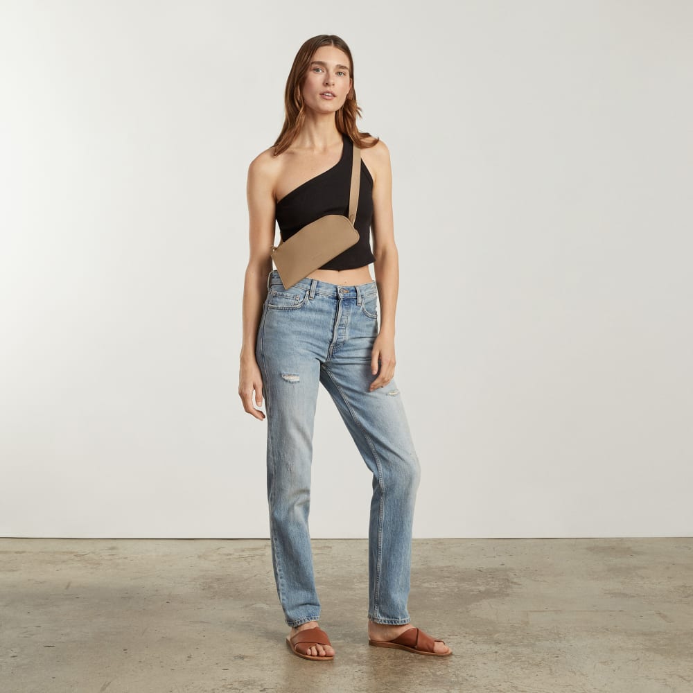No pesticides. Nopales. In collaboration with Desserto?. we took our best-selling sling bag and remade it with organically sourced prickly pear cactus. The Desserto? textile is our first plant-based material to be used as a leather alternative. Why cactus? It has a great CO2 sequestering capacity and acts like a natural carbon sink. while using zero irrigation and naturally regenerating soil. Plus. 50% of the byproduct is used to feed cattle. It’s a cruelty-free. sustainable material without any of the toxic chemicals. phthalates. and PVC that conventional leather has.