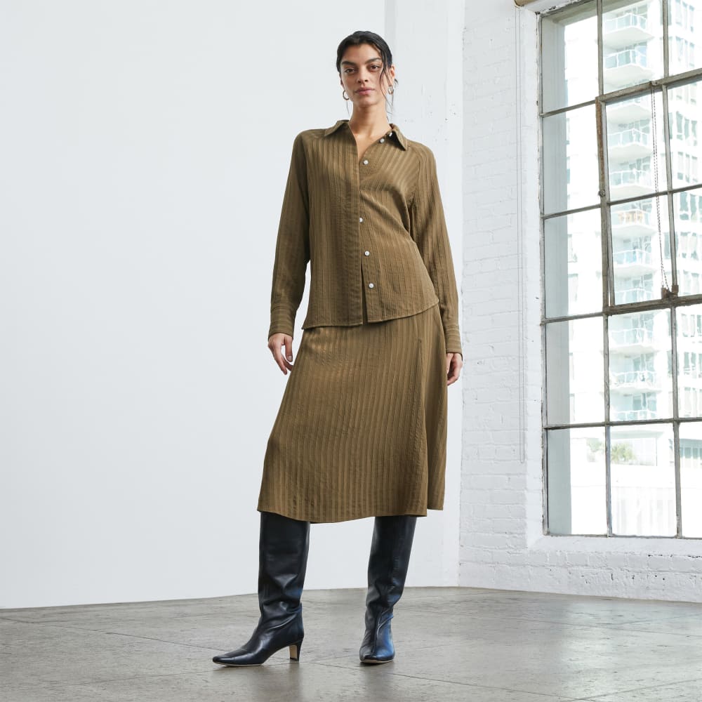 The City Stripe Shirt will be your new go-to style. Featuring raglan cuffed sleeves and a button-front. Wear it alone for a relaxed. yet put together look or throw a blazer or bomber on for added warmth. This fabric has a heavier weight and is great for transitioning seasons.The viscose in this garment comes from an FSC-certified supplier who has been audited and assessed as being at low risk. or has taken substantive action to eliminate known risk of sourcing rayon and viscose from ancient and endangered forests by CanopyStyle. Made from post-consumer plastic bottles that are collected. washed. chopped. melted. and then made into polyester yarn. REPREVE? recycled polyester boasts less energy and water usage as well as reduced greenhouse gas emissions. when compared to virgin polyester and other conventional recycled plastic sources. The REPREVE? registration platform provides full supply chain visibility from source to product??ensuring the exact bottle count per product and source location of those bottles. To date. REPREVE? has saved over 30 billion plastic bottles from landfill.
