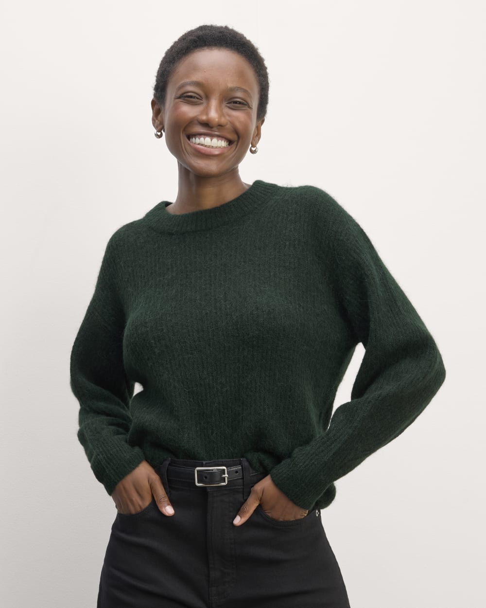 Giving all the warm and fuzzies—without the itch or the weight. in a classic crew neckline. it features a cool rib pattern. a relaxed silhouette. and is made from our prickle-free. pilling-resistant. and responsibly-sourced Alpaca blend. You’ll wear it to work. WFH. maybe even in bed—we won’t tell.