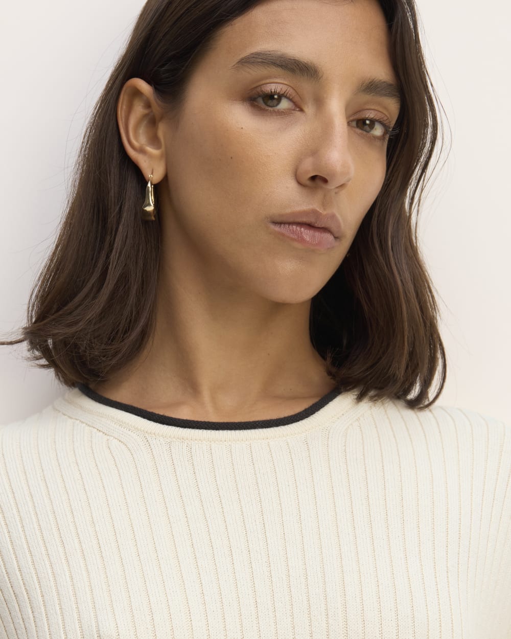 This piece features a relaxed fit. midi length. organic cotton. crewneck. and long sleeves in 100% organic cotton.