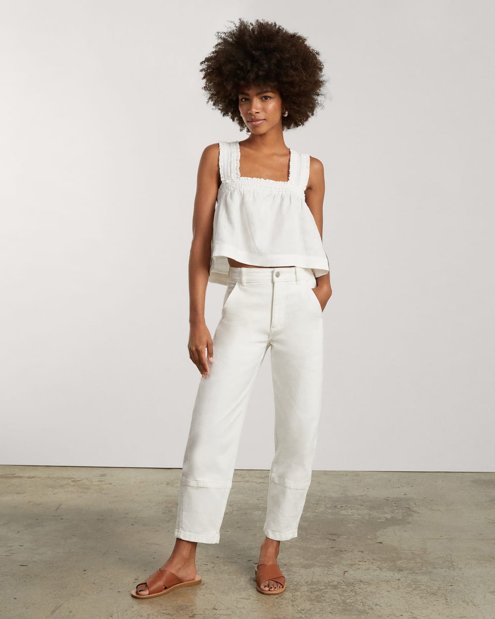 Made of buttery soft leather. the Day Crossover Sandal features a tapered square toe. a flexible footbed that gives with every step. and a few updates from the last rendition??like a slightly raised sole and a wider. better fit throughout. Plus. the criss-cross straps are folded over for added comfort and less chafing??talk about a win-win.