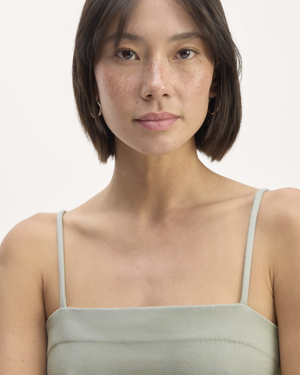 This piece features a midi length. fit-and-flare silhouette. spaghetti straps. bell-shaped skirt. and back zipper.