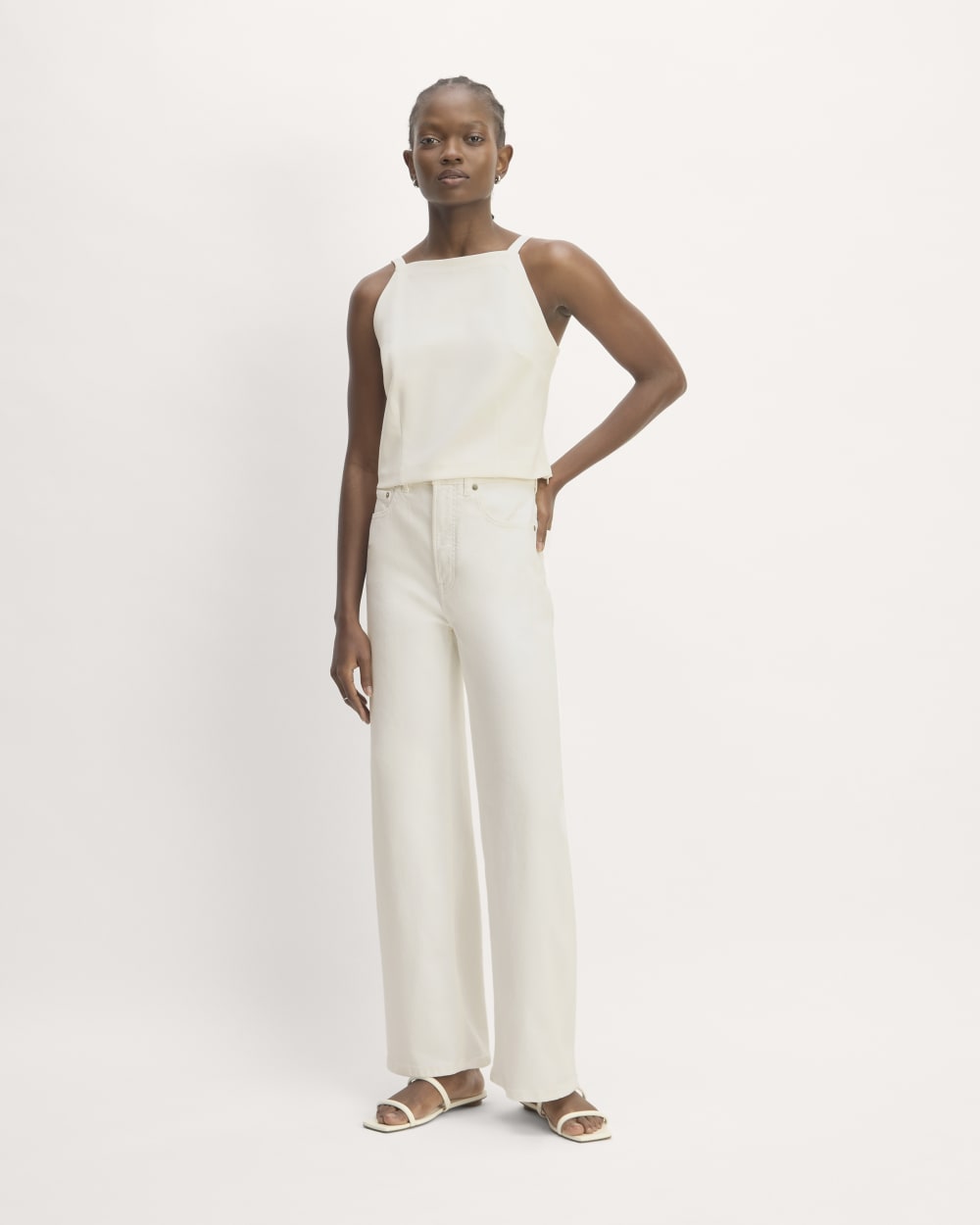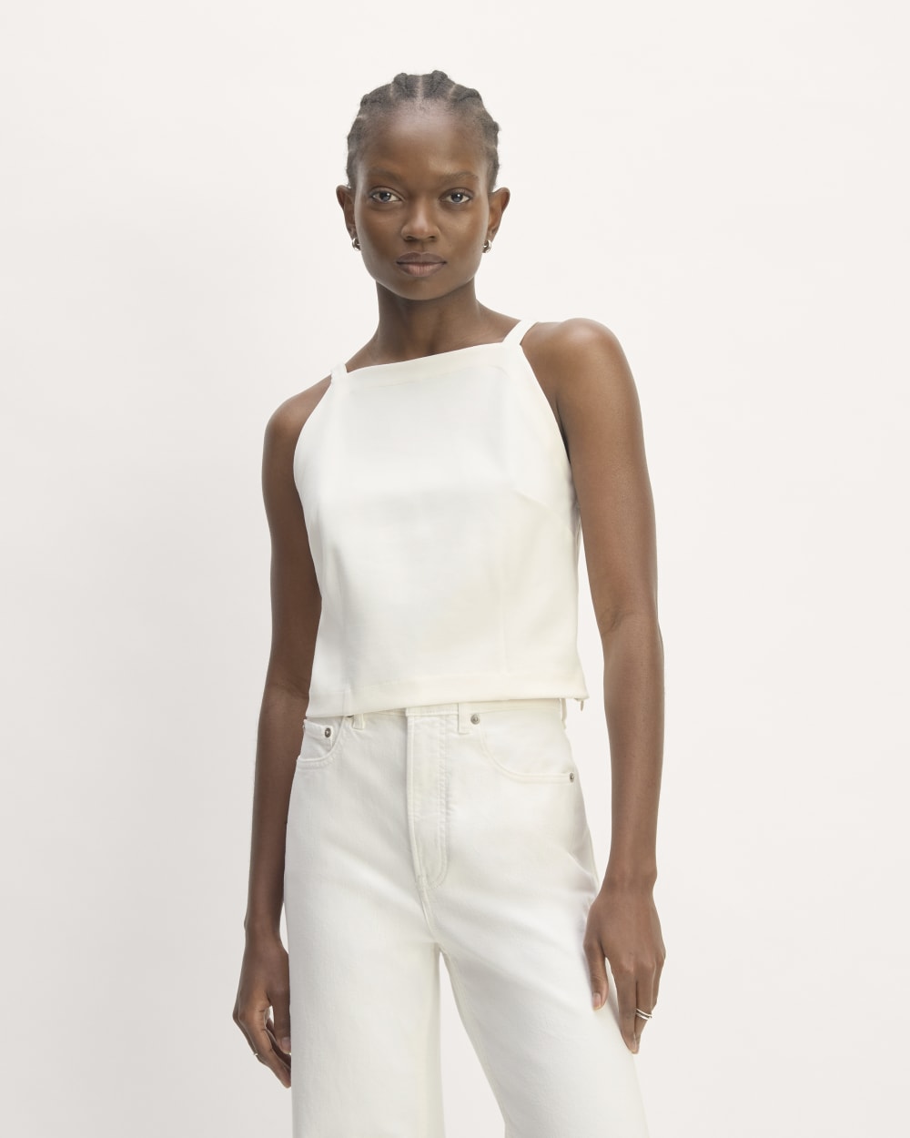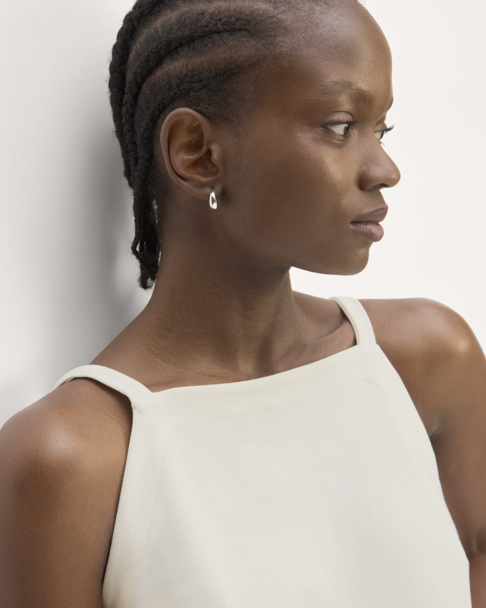 This piece features a high neck. sleeveless. and cropped length. with waist and bust darts. made with our dream organic cotton and TENCEL??Modal blend.