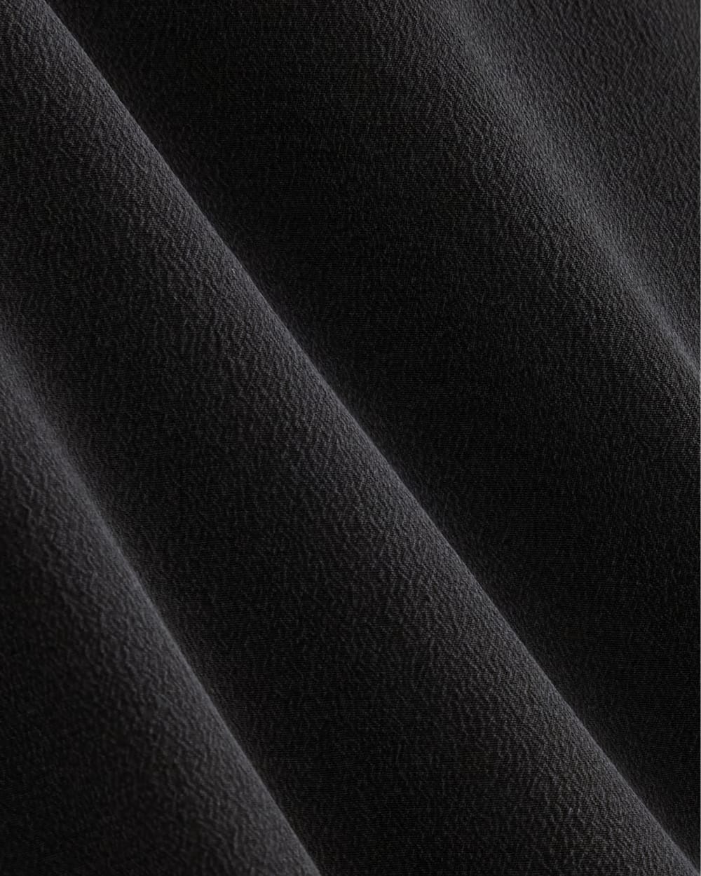This pull-over piece features a stand collar. front placket with buttons. short sleeves and a straight hem in our eco-conscious Clean Silk. for more beauty and less waste.