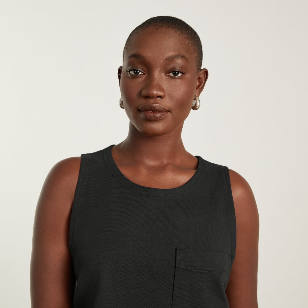 The Premium Weight Cropped Pocket Tank features a cool sleeveless fit with low armholes. a patch pocket. and a triple needle topstitch at the neckline and armholes. Made with 100% organic cotton for all-day breathability. Pair this with some retro jersey shorts for the ultimate summertime look.