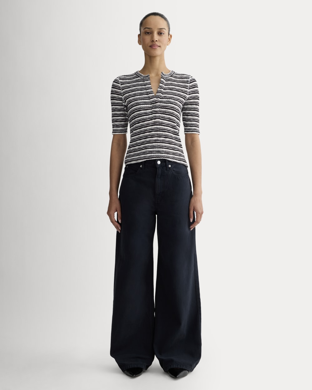 The Rib-Knit Short-Sleeve Henley | Bone / Black