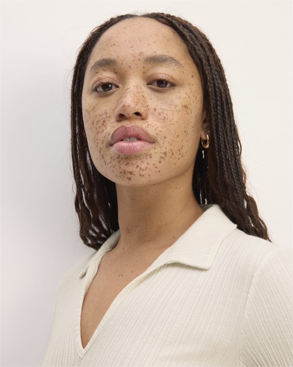 The Rib Soft Knit Open Collar Polo | Bone