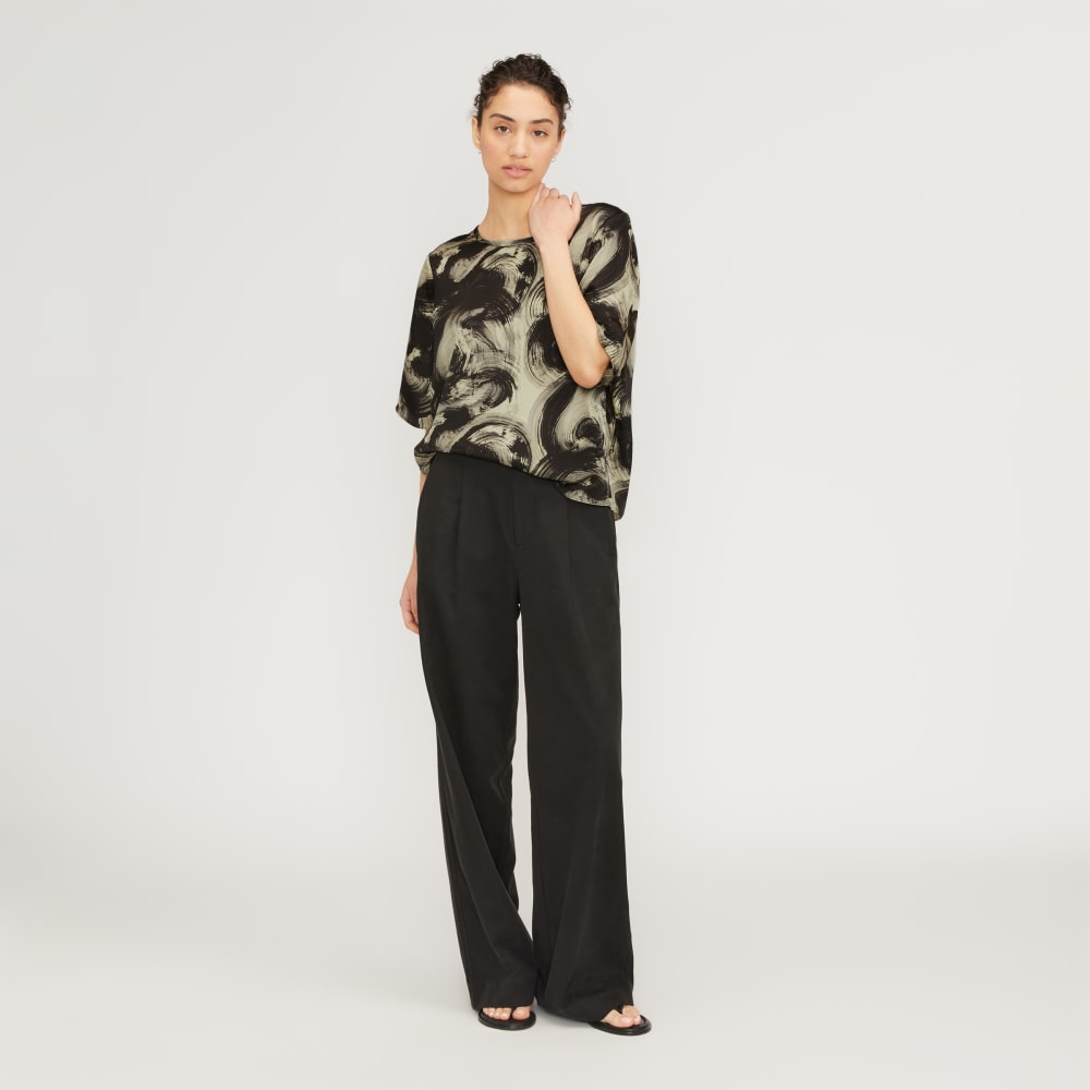 A chill new addition to your tee wardrobe. The Satin Relaxed Tee is a simple crewneck silhouette with a relaxed body. Made with our new lightweight hammered FSC-certified viscose that has a slight sheen. consider this tee a much needed upgrade.